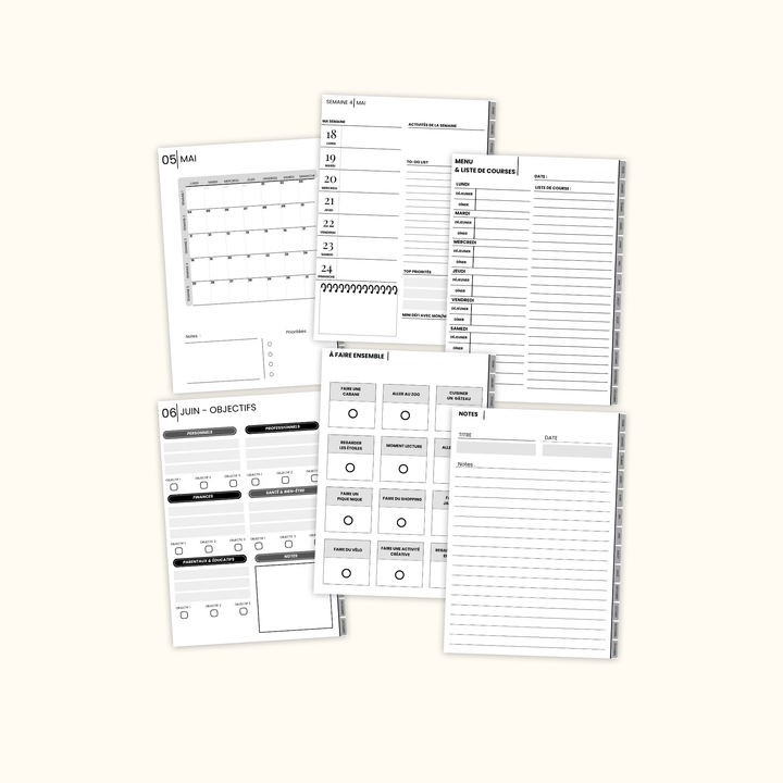 • 🎯 Pages Objectifs mensuels → pour garder le cap sur vos priorités chaque mois.